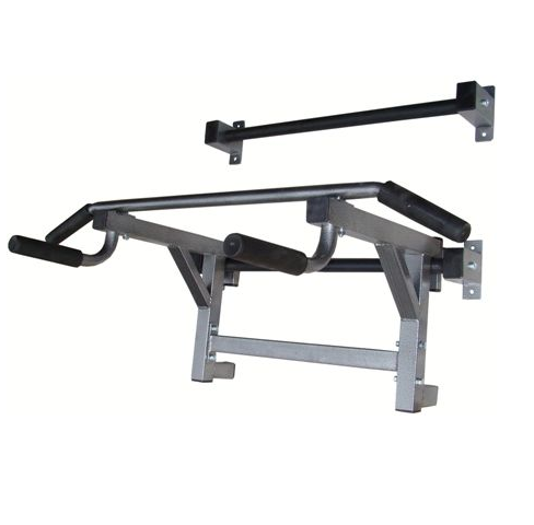 "Крепление к стене состоит из двух перекладин, которые устанавливаются на необходимую высоту. Турник со специальным упором на стену. Зацепив за верхнее крепление можно использовать как турник, а перевесив на нижнее - как брусья.
