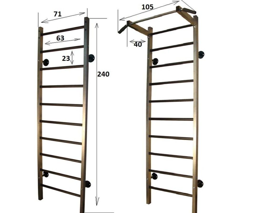 Стенка шведская предназначена для установки в жилых помещениях или спортивных залах.