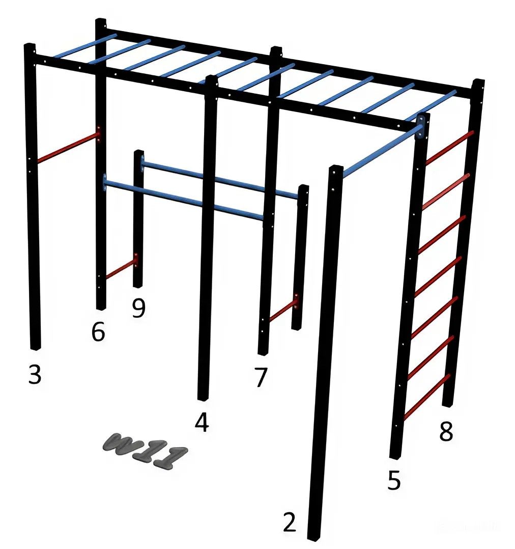 Спортивная площадка Workout W11.16 c удилненным турником (1600мм) для качели (без качели)